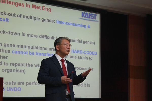 随后,Sang Yup Lee教授登上微生物代谢国家重点实验室“启智讲坛”,带来了题为“面向化学品和材料的微生物代谢工程”的学术报告。Lee教授的报告从变位思考的思维方式出发,以生动的例子幽默风趣的引入学术创新,对现场师生启发很大;他还展示了目前以系统生物学和合成生物学研究方法在微生物代谢工程研究中的最新进展。听讲师生还就相关研究中的一些热点提出了自己的问题,与Lee院士进行了热烈的讨论。